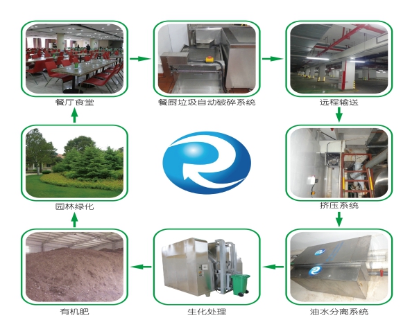 输送、挤压、油水分离、生化处理的一体化作业,将餐厨垃圾源头制成有机肥,使餐厨垃
